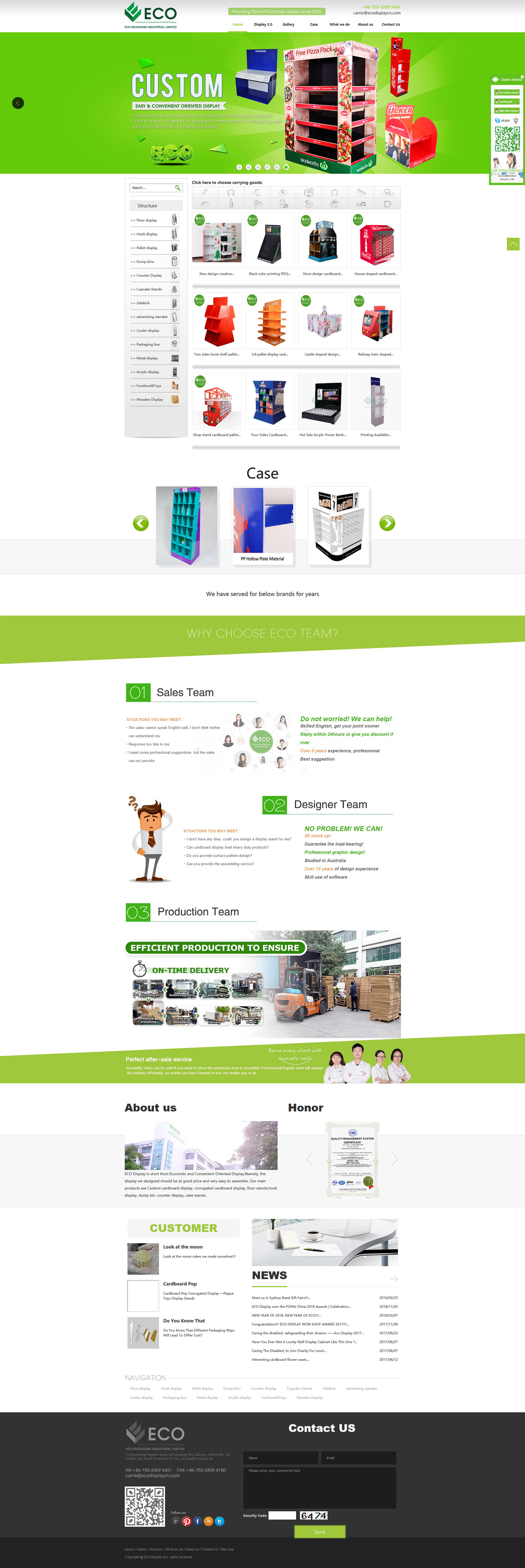 結(jié)合易扣展示的logo元素及紙展示架的行業(yè)屬性,將網(wǎng)站制作主色調(diào)定位綠色,將白灰色作為輔助色,網(wǎng)站制作風(fēng)格保持著簡(jiǎn)約大氣的風(fēng)格。