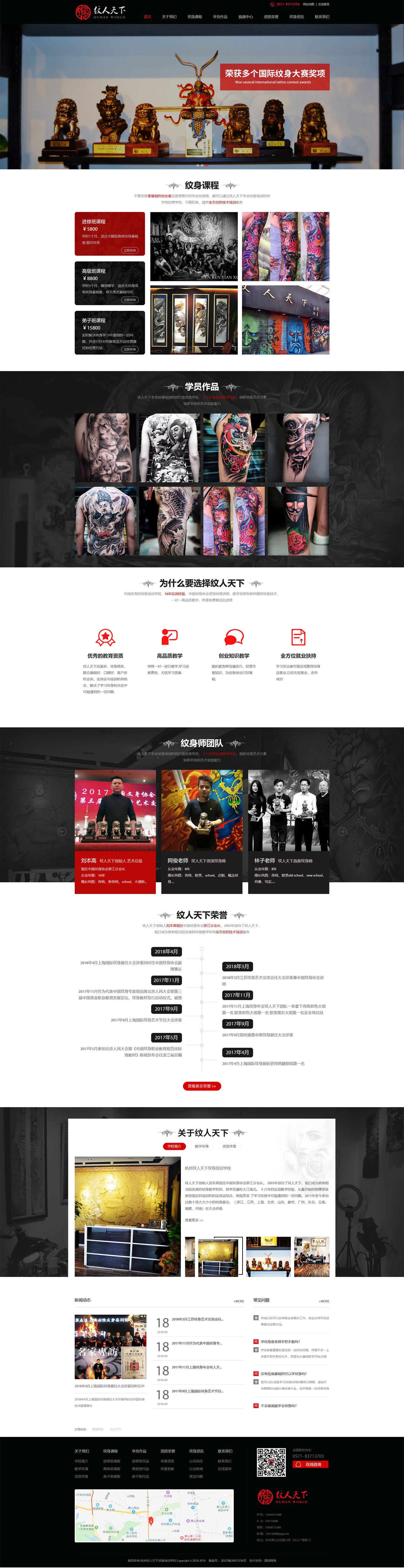 結(jié)合杭州紋人天下培訓(xùn)機(jī)構(gòu)VI元素將網(wǎng)站設(shè)計(jì)主題色使用深紅色,符合紋身行業(yè)年輕化客戶群體的特征。