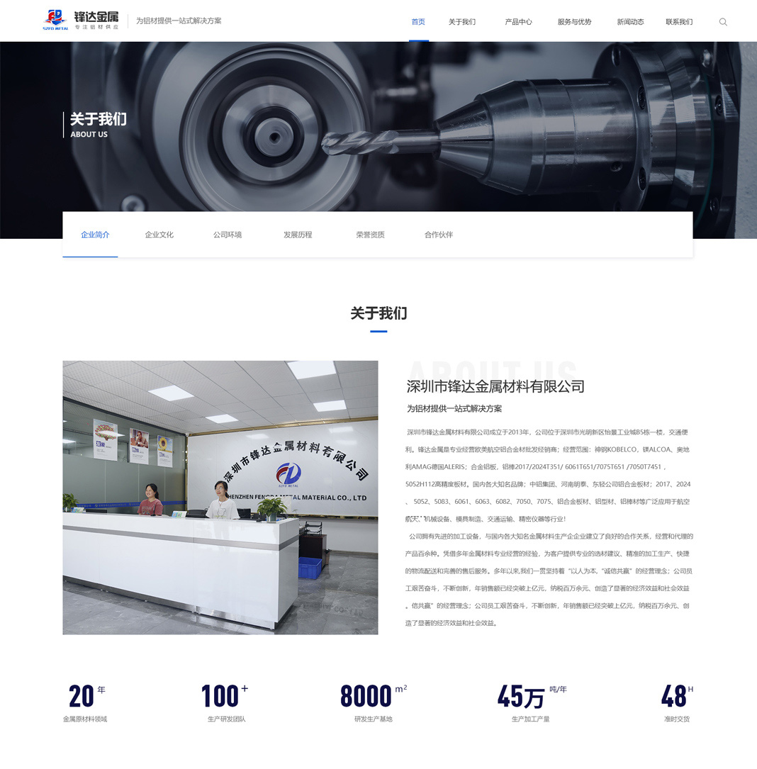項(xiàng)目背景鋒達(dá)金屬成立于2013年專為鋁材提供一站式解決方案的企業(yè),基于鋒達(dá)金屬提升品牌形象和加強(qiáng)網(wǎng)站運(yùn)營的建站目標(biāo),根據(jù)鋁材網(wǎng)站制作的特點(diǎn)全面策劃設(shè)計(jì),圍繞用戶體驗(yàn)、視覺呈現(xiàn)及SEO友好展開網(wǎng)站的搭建。