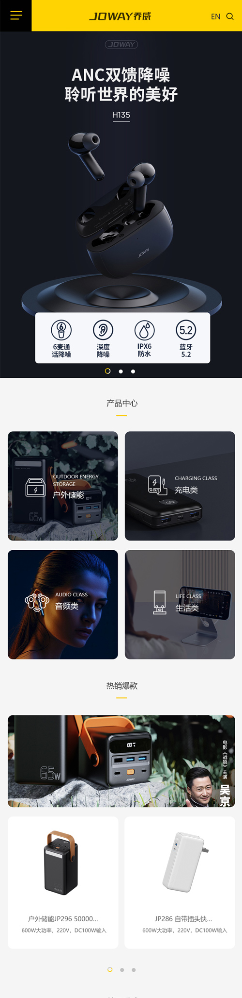 圍繞移動(dòng)電源網(wǎng)站設(shè)計(jì)風(fēng)格,結(jié)合喬威品牌元素,網(wǎng)站設(shè)計(jì)主色系采用黃色,也符合移動(dòng)電源網(wǎng)站設(shè)計(jì)調(diào)性。網(wǎng)站整體保持著清晰明了的設(shè)計(jì)風(fēng)格