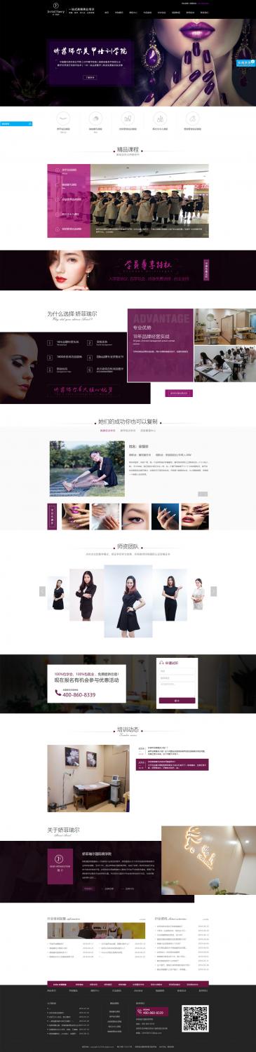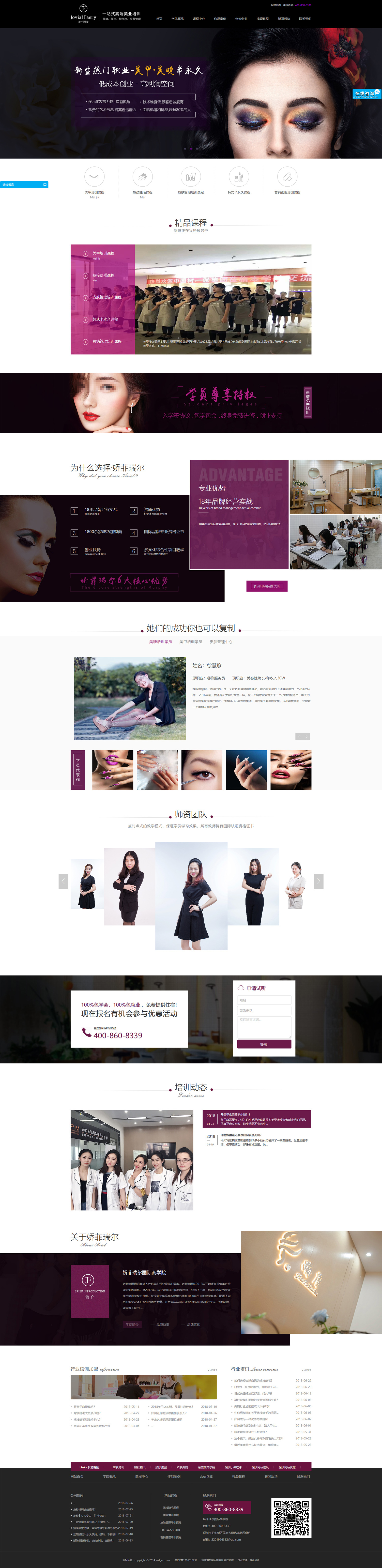 結(jié)合嬌菲瑞爾的logo元素及美業(yè)培訓(xùn)的行業(yè)屬性,將網(wǎng)站主色調(diào)定位紫色,將黑色作為輔助色,網(wǎng)站整體風(fēng)格保持著時(shí)尚簡(jiǎn)約的風(fēng)格