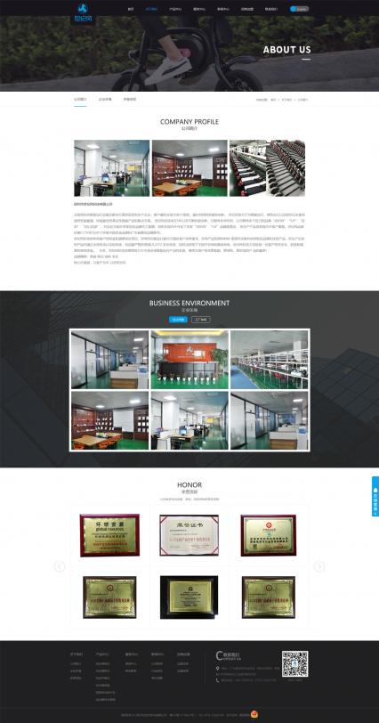 根據(jù)公司所在行業(yè),采用電子科技藍(lán)為主色調(diào),大塊色調(diào)采用的是黑灰色為主,凸顯網(wǎng)站的質(zhì)感及神秘感,采用主色調(diào)藍(lán)色為點(diǎn)綴,起到畫龍點(diǎn)睛的作用。
