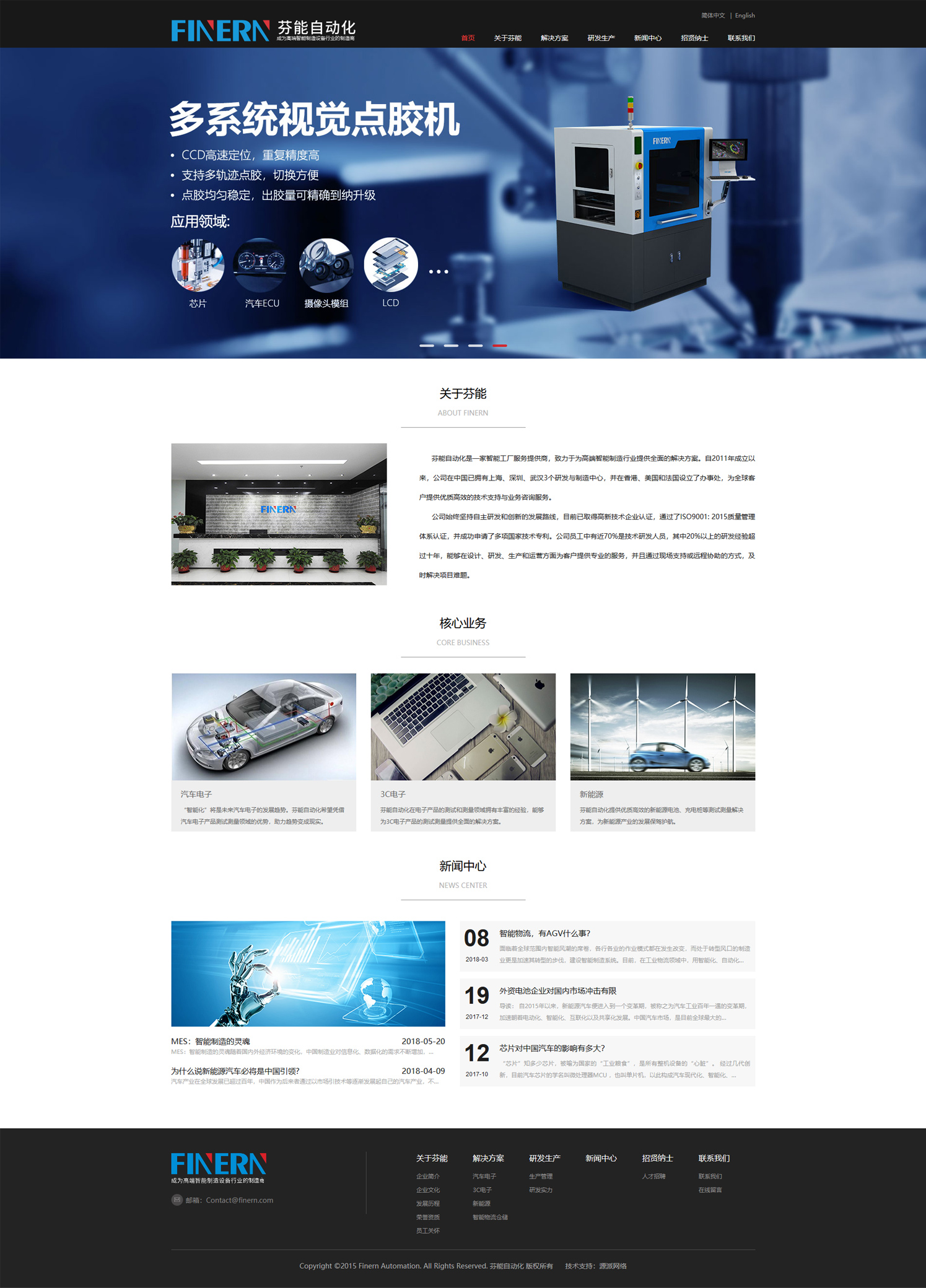 網(wǎng)站建設(shè)整體風(fēng)格圍繞芬能自動化的品牌logo元素采用了藍色系作為網(wǎng)站設(shè)計的主色調(diào),使網(wǎng)站建設(shè)風(fēng)格整體保持著環(huán)保智能的科技屬性。