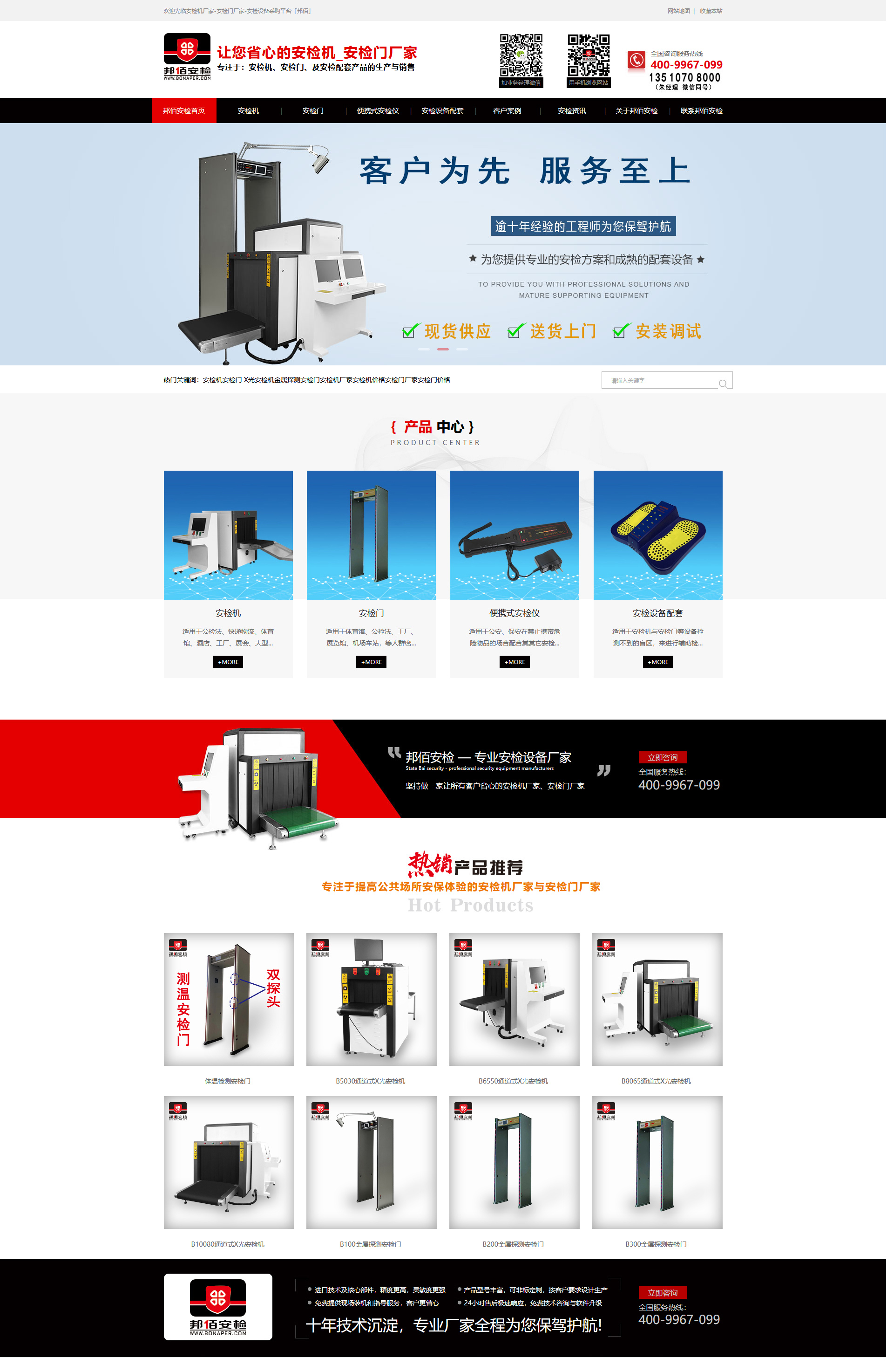 結(jié)合邦佰安檢的logo元素及安檢設(shè)備行業(yè)的屬性,將網(wǎng)站主色調(diào)定位紅色,將黑白色作為輔助色,使網(wǎng)站整體保持著清簡潔明了的風(fēng)格走向